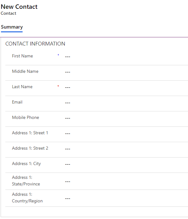 - Step 3: Create Basic form record “New Contact” for the Dataverse form created in Step 1.