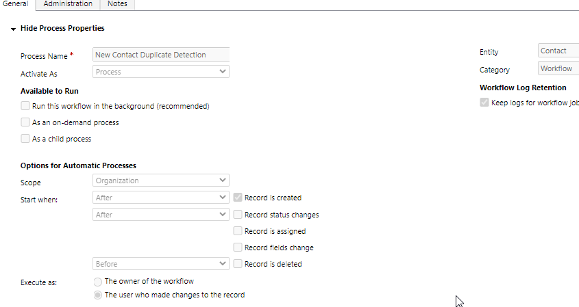 - Process Name: New Contact Duplicate Detection (you can name whatever you want)